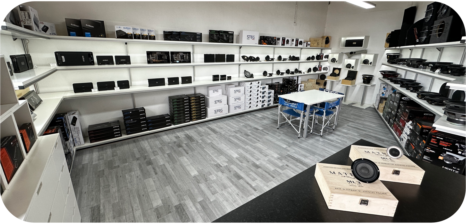 Verbaut wurden die System i.d.R. mit einer "potenten" 4x100W Endstufe. Sei es Rainbow oder Mosconi. Zu 99% wurde auch ein Audison bit ten DSP mit eingesetzt um das volle Potential des Systems zu schöpfen.